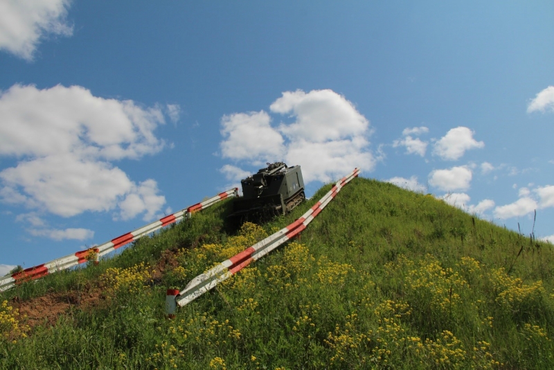 ДУМ-П «Уран-14» позволяет преодолевать спуски и подъемы крутизной до 30 градусов, косогоры до 15 градусов, рвы шириной до 1,2 метра, вертикальные стенки до 0,4 метра.
